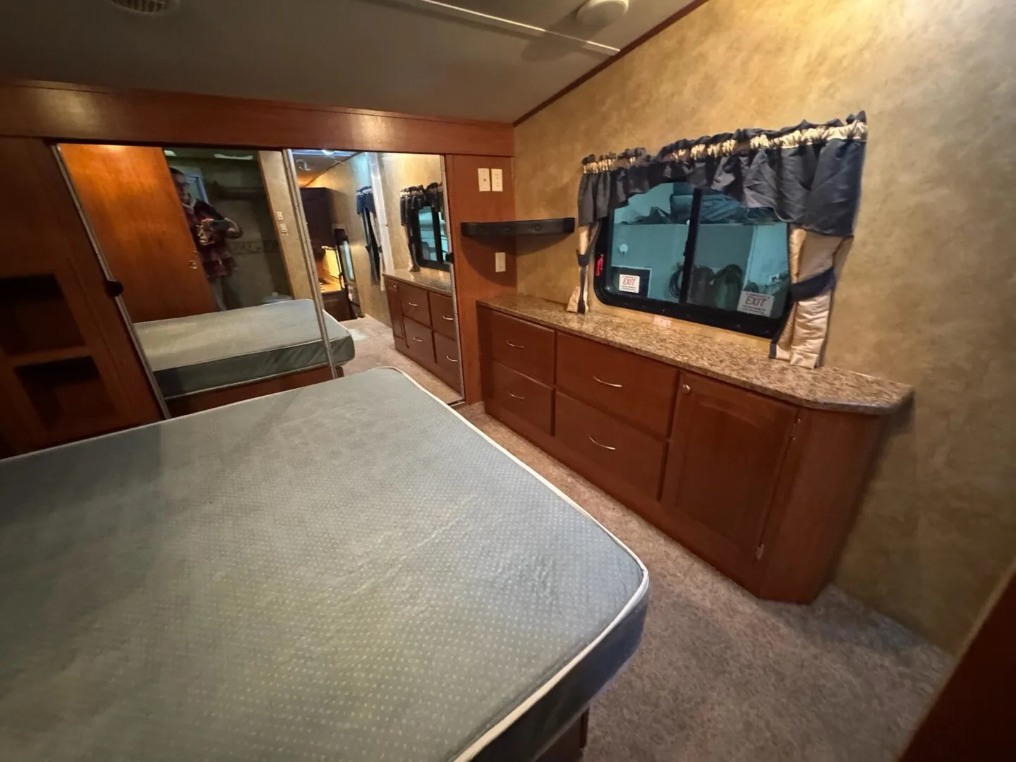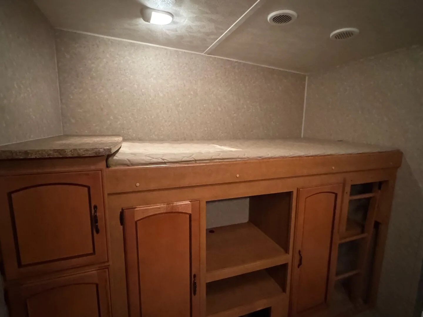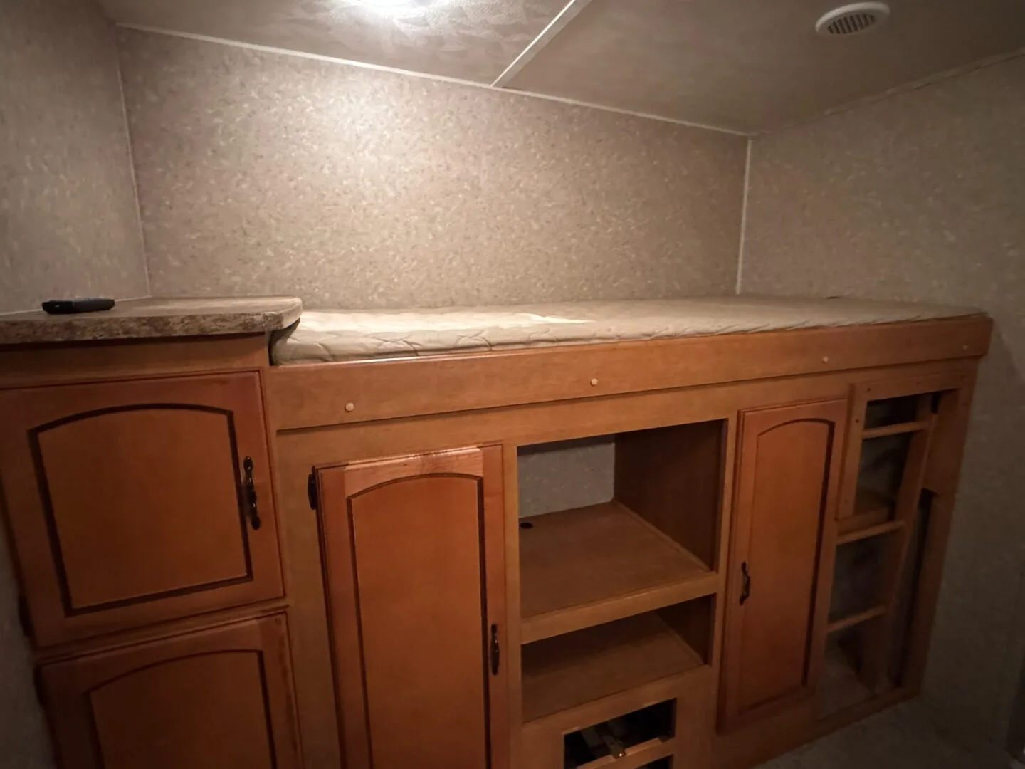 Rear bunk room, SLEEPS 4 and lots of storage —- own door to outside