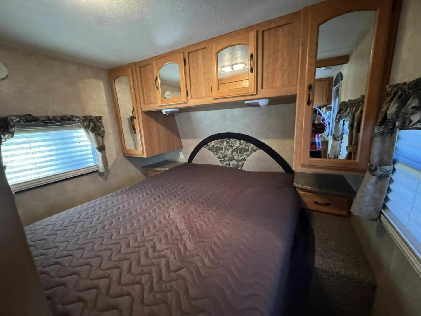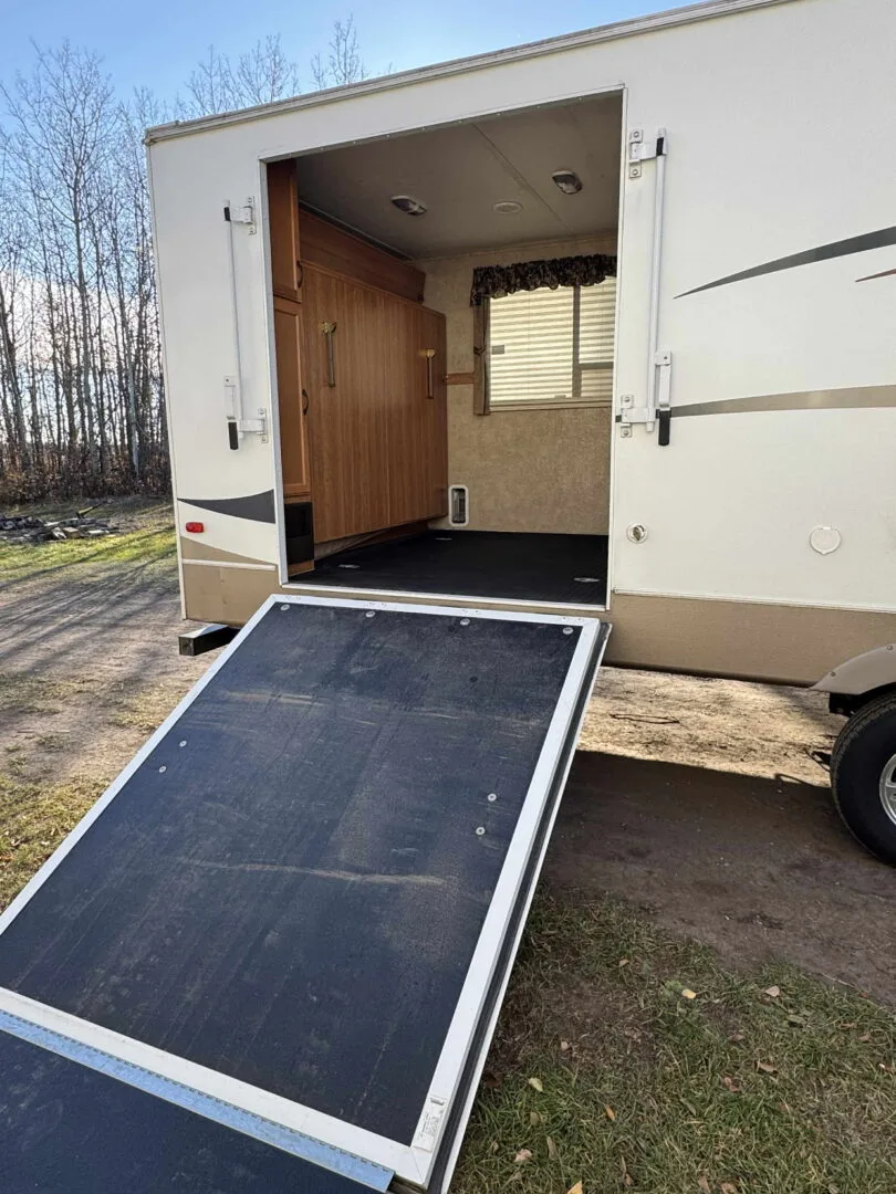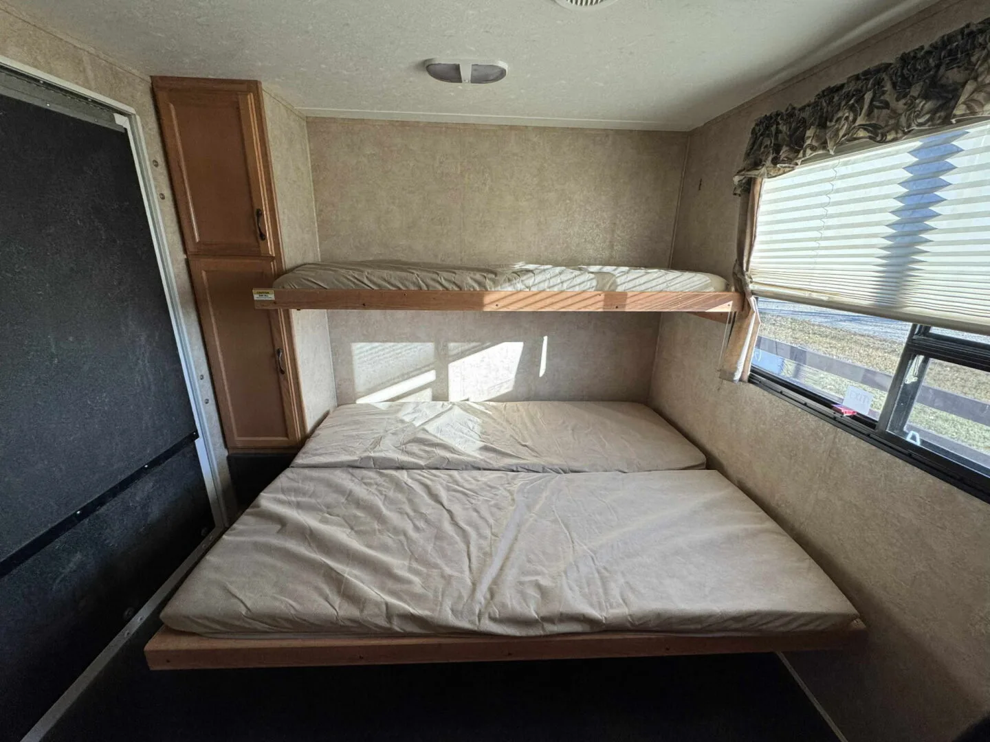 Has separate garage WITH QUEEN BOTTOM BED, Single on top.