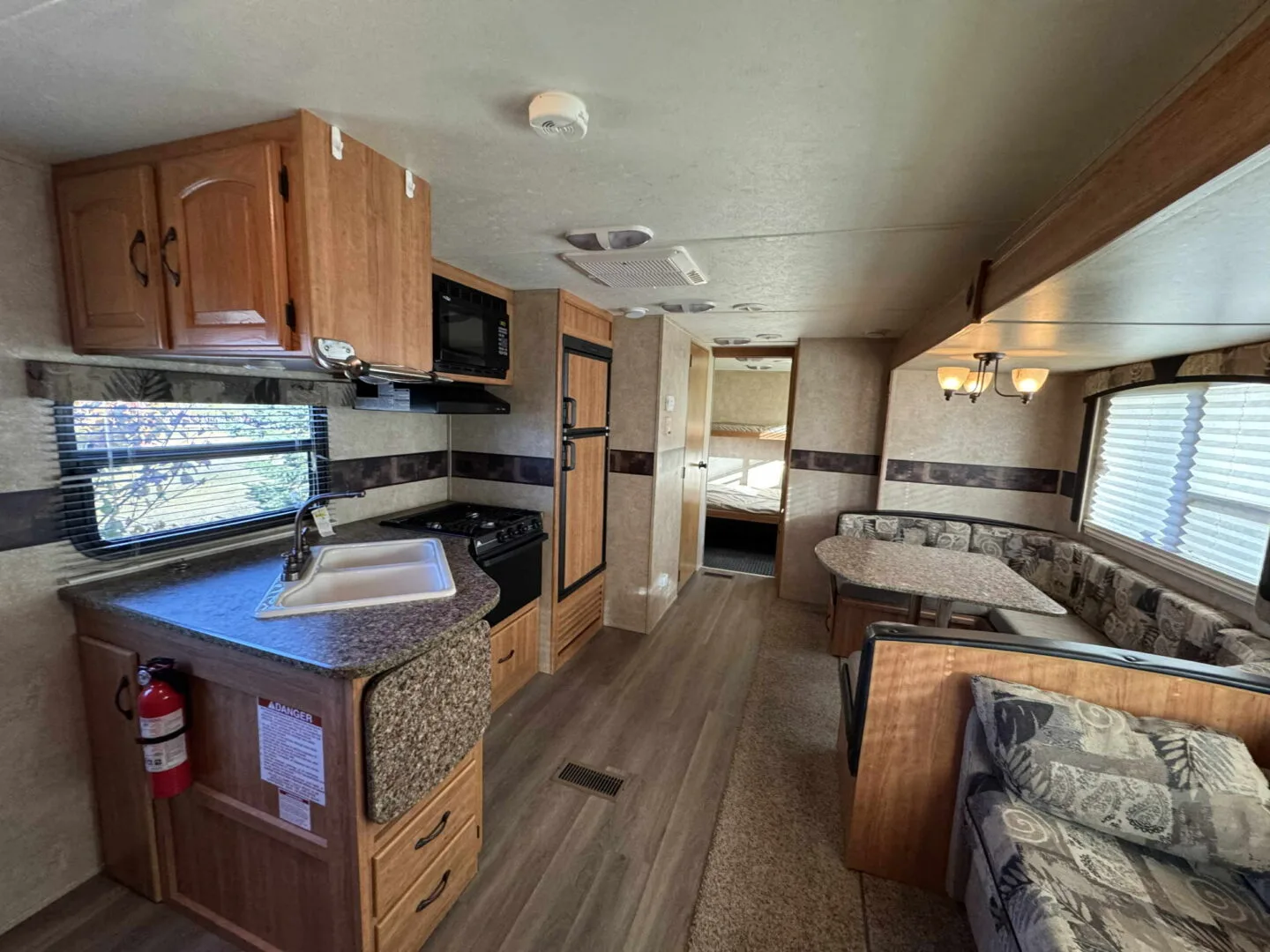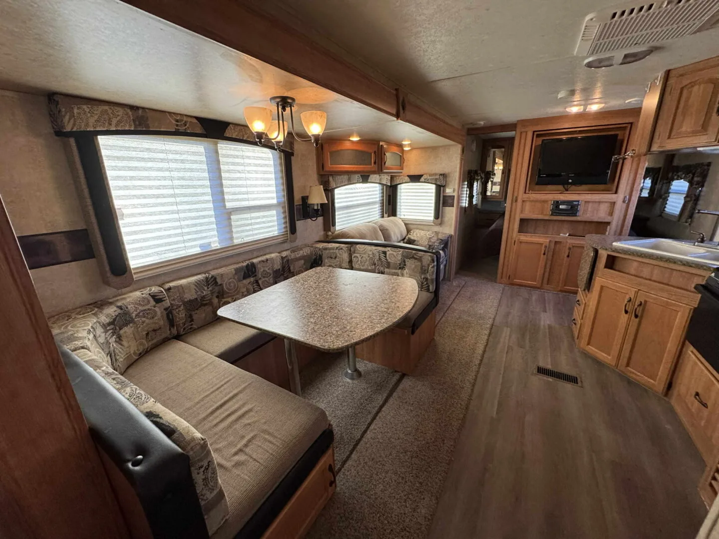 -main area includes a beautiful kitchen with lots of storage and a big u-shape dinette and couch