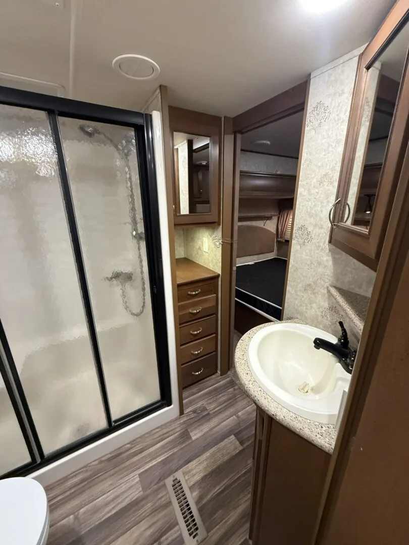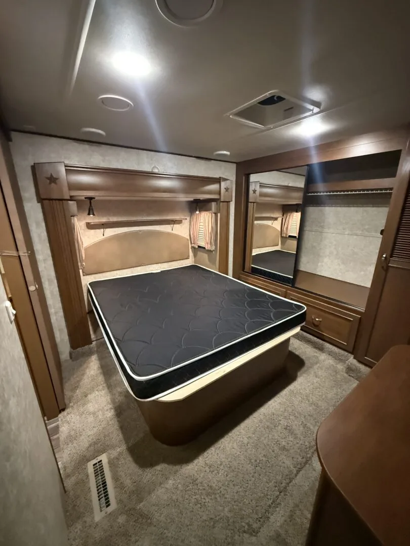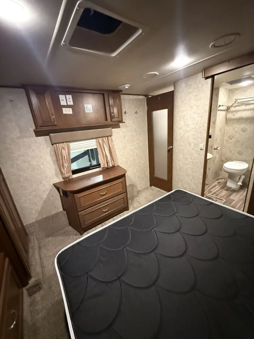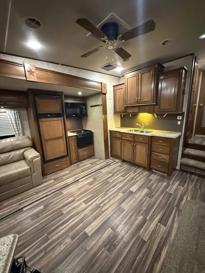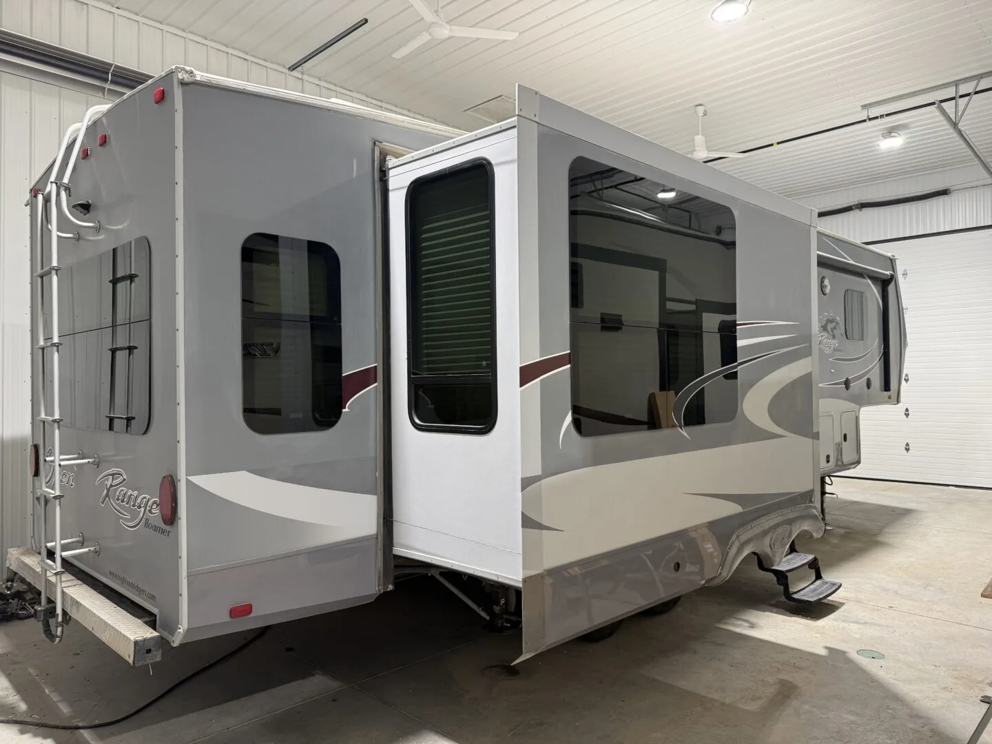 The 2015 Open Range Roamer 337RLS is a luxurious three-slideout fifth wheel known for its wide-body design (100 inches), residential-style rear living area, and excellent storage capacity. It features a 4-season package with R-38 insulation, making it suitable for year-round, full-time living in comfort.