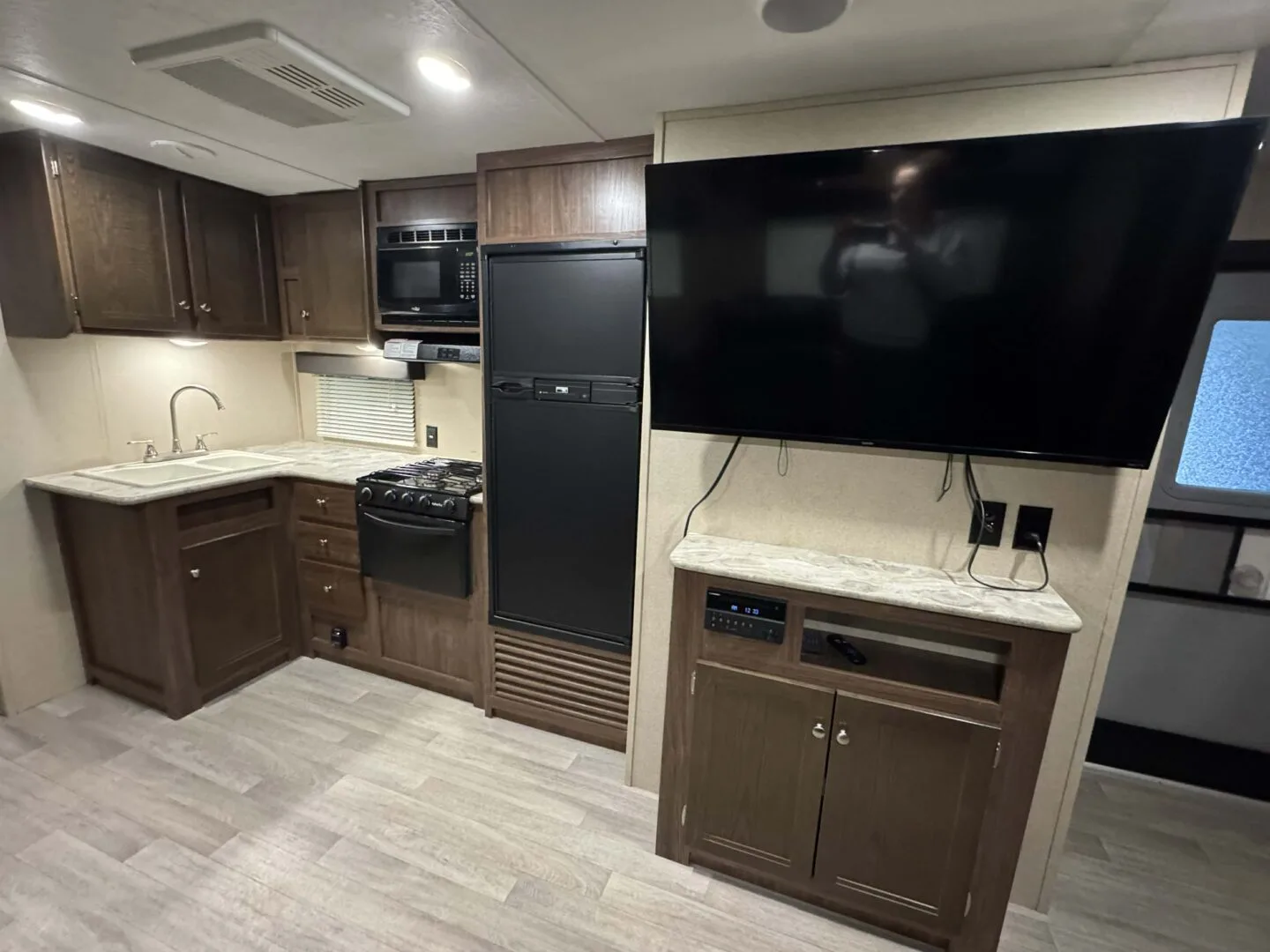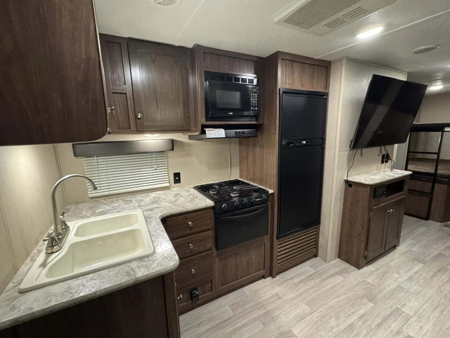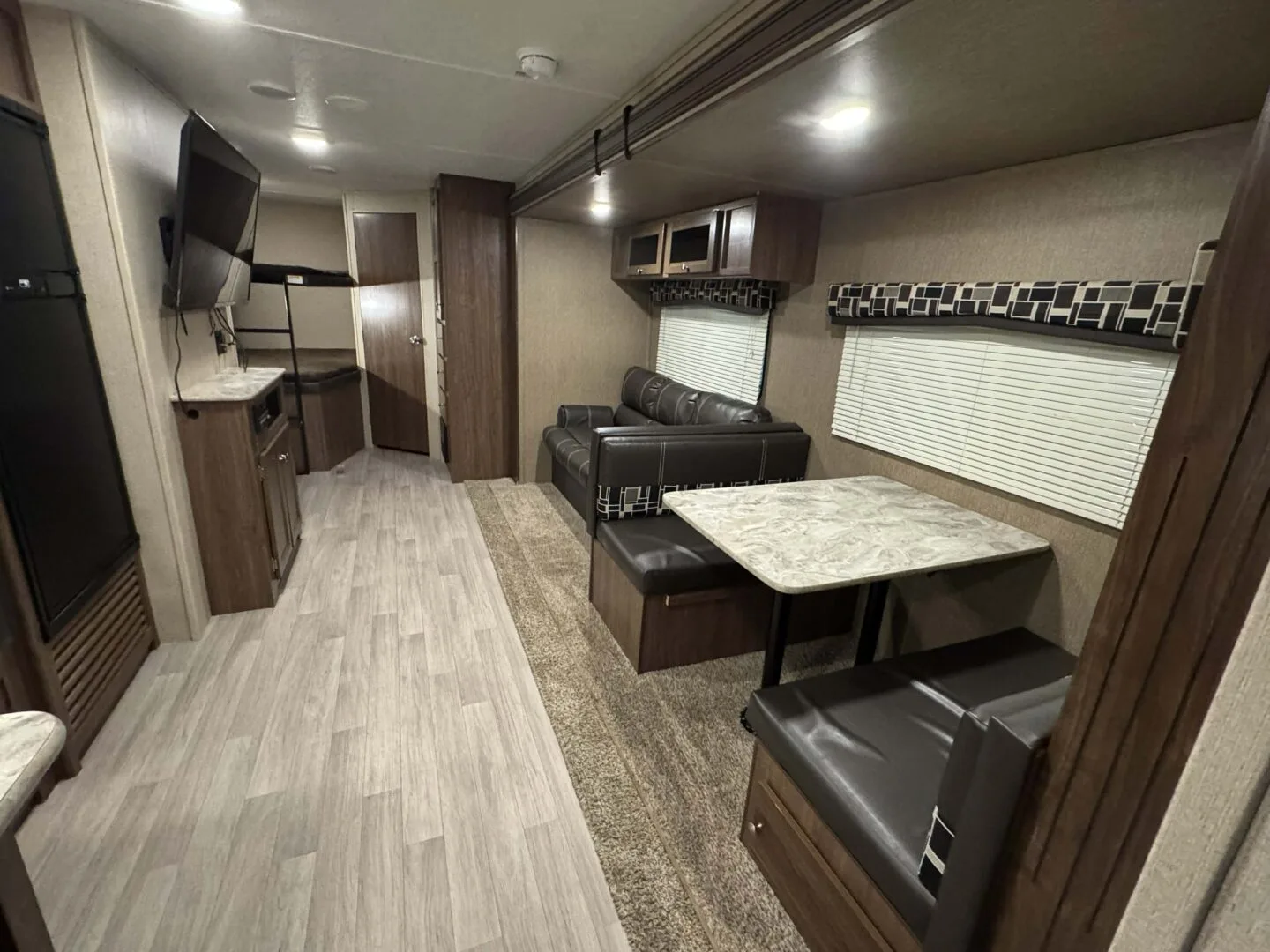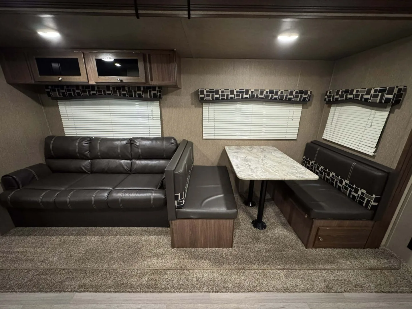 -main area includes couch, dinette and full kitchen