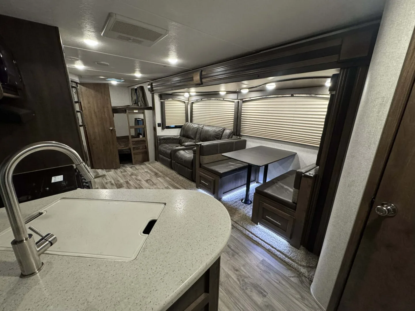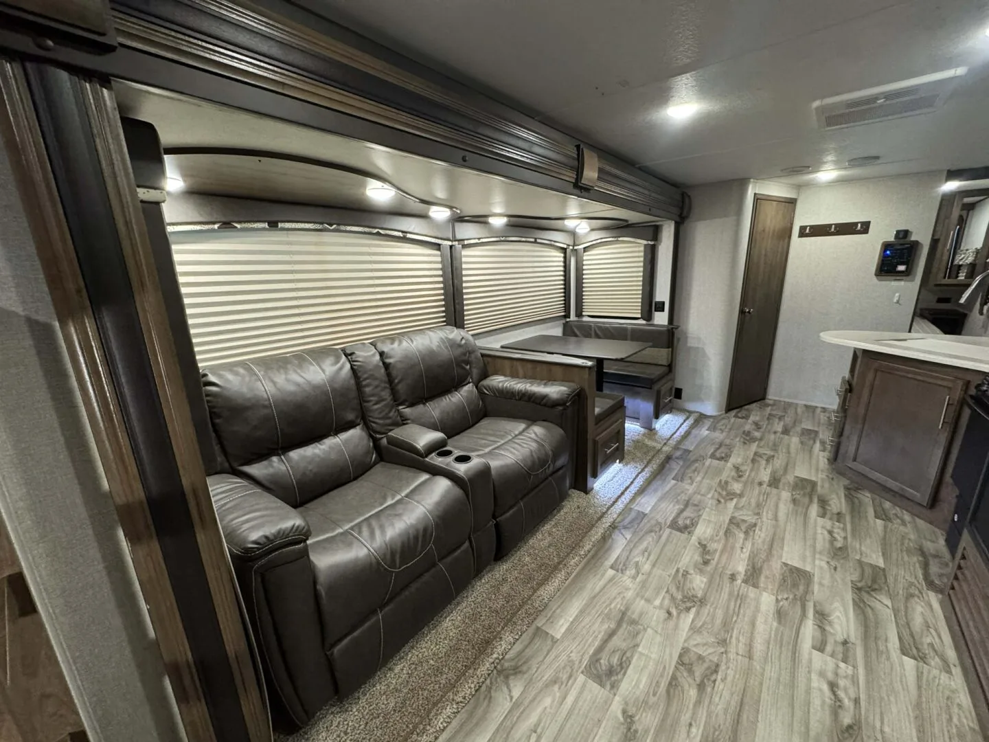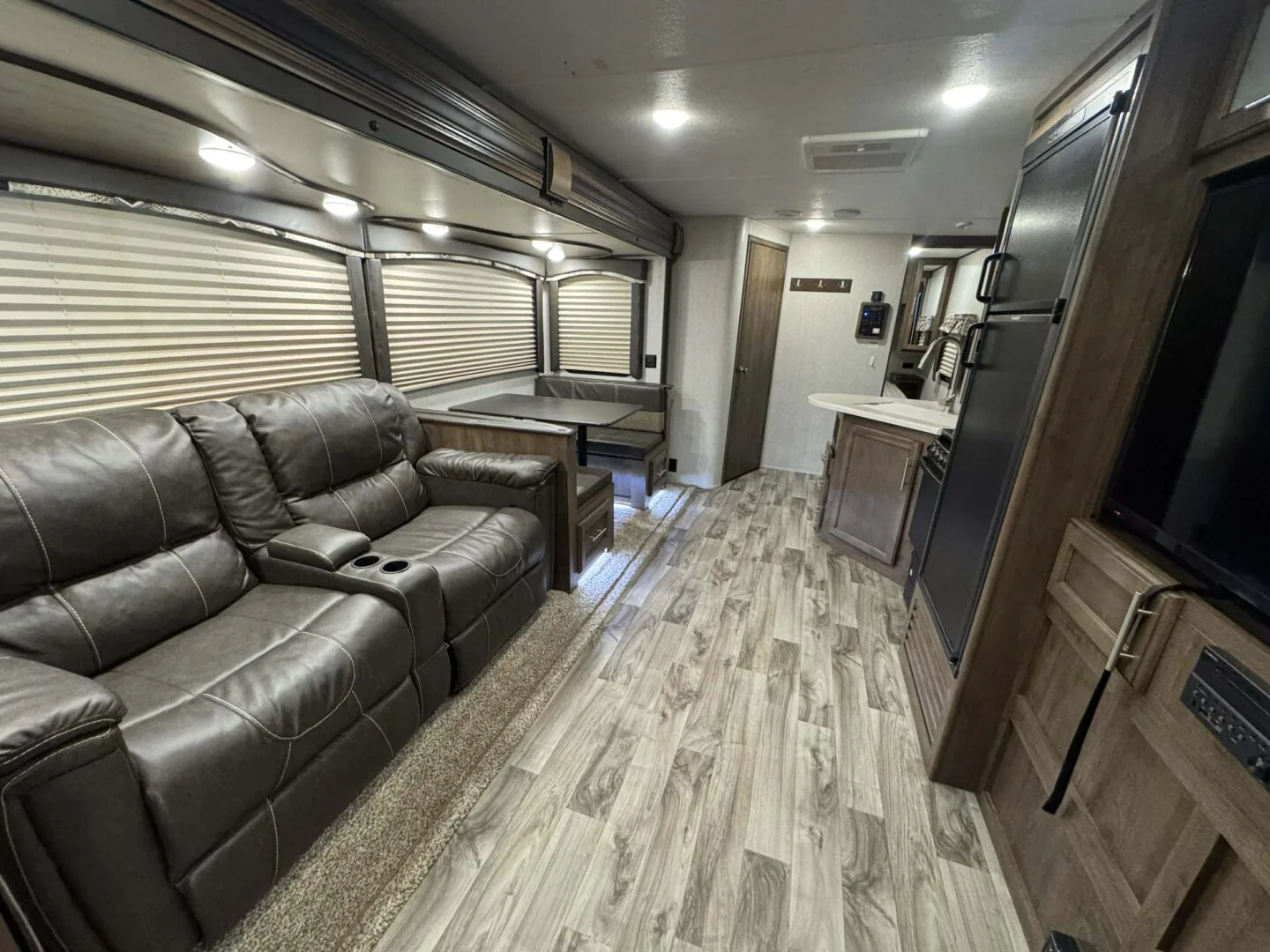 -main area includes couch, dinette and full kitchen