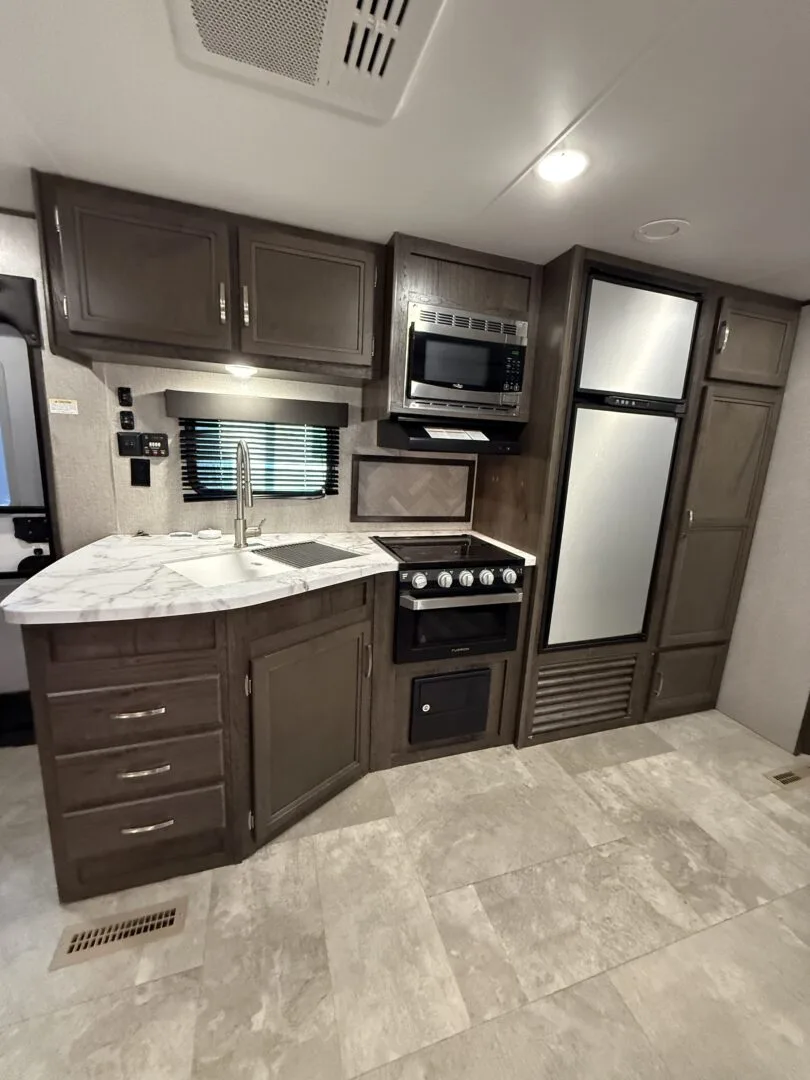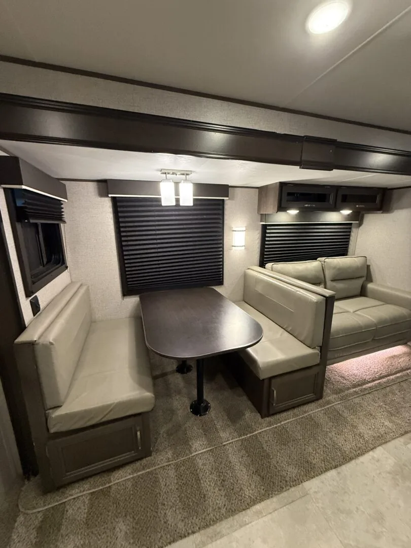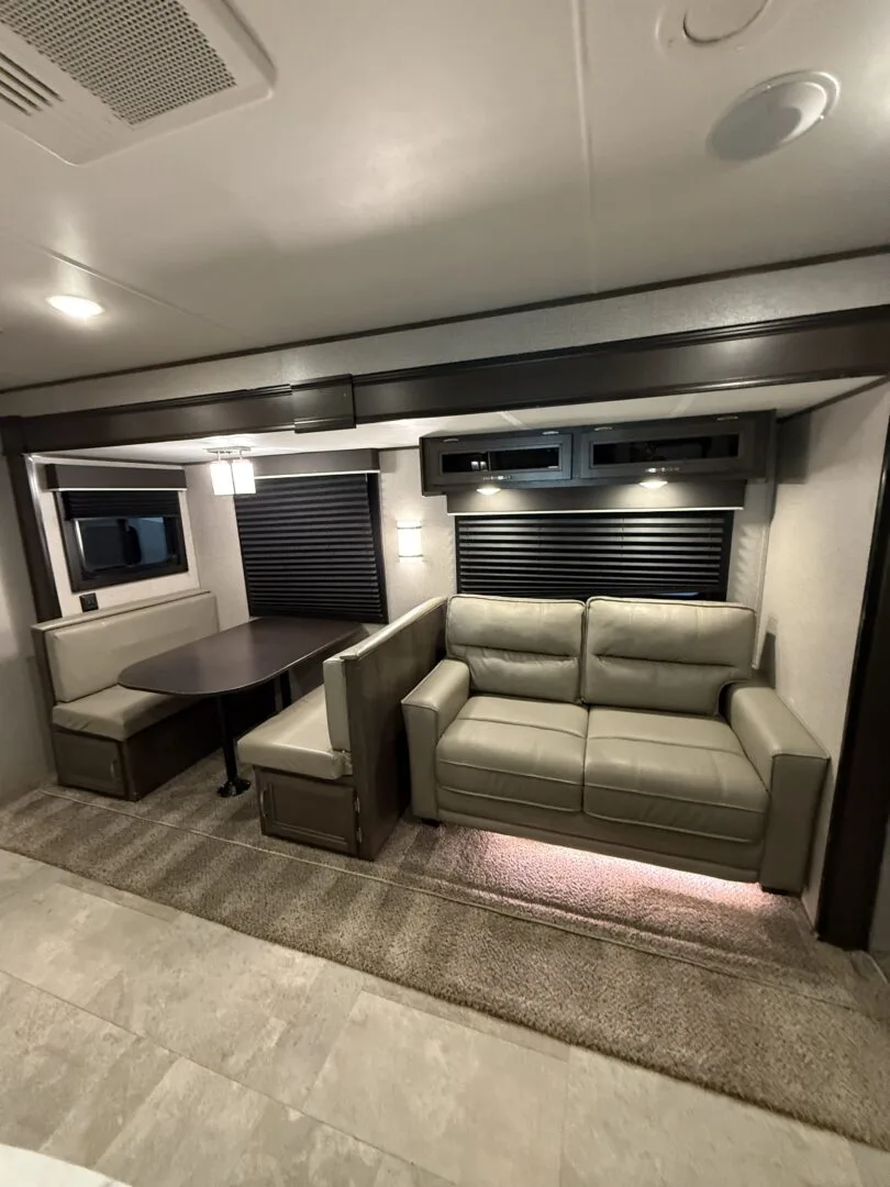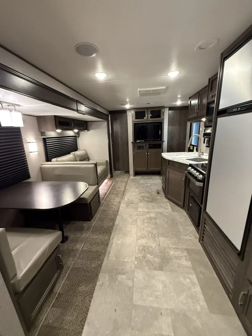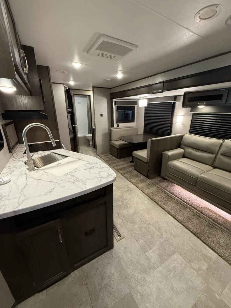 -main area includes couch, dinette and full kitchen