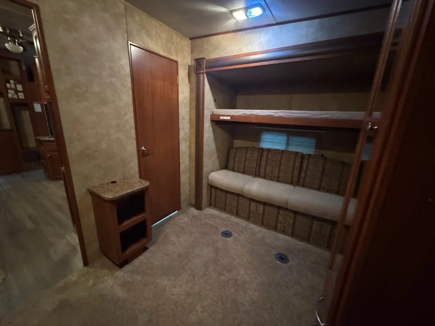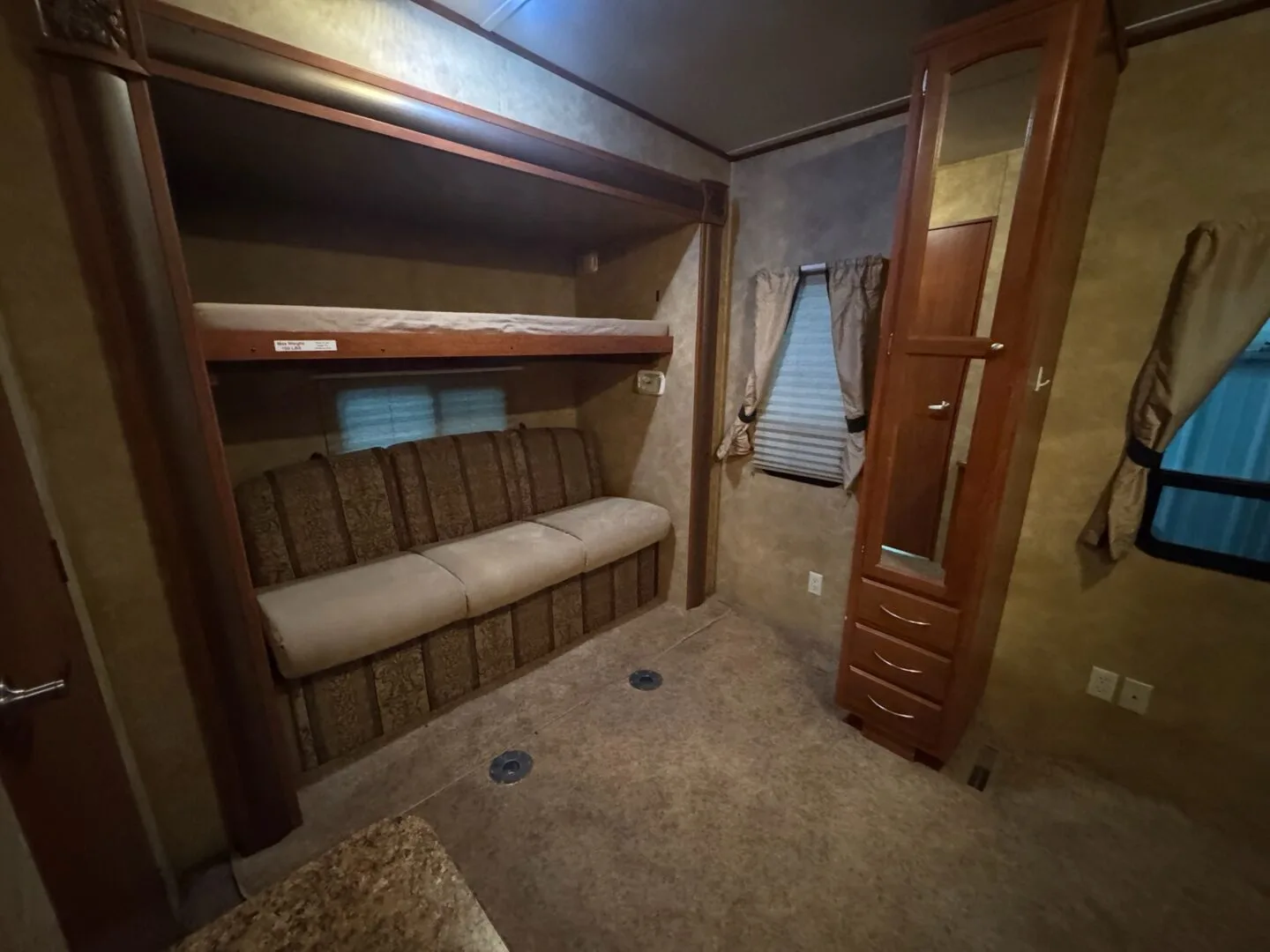 Rear bunkroom has tons of storage with 2 beds and 2 couches